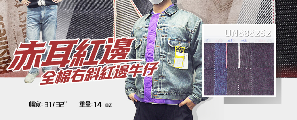 全棉豎竹右斜紅邊牛仔布 14.3oz 32/33" UN888714