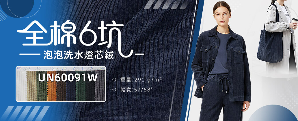 全棉6坑燈芯絨 295g/m2 57/58" UN60003A 全棉6坑4片燈芯絨 6W燈芯絨